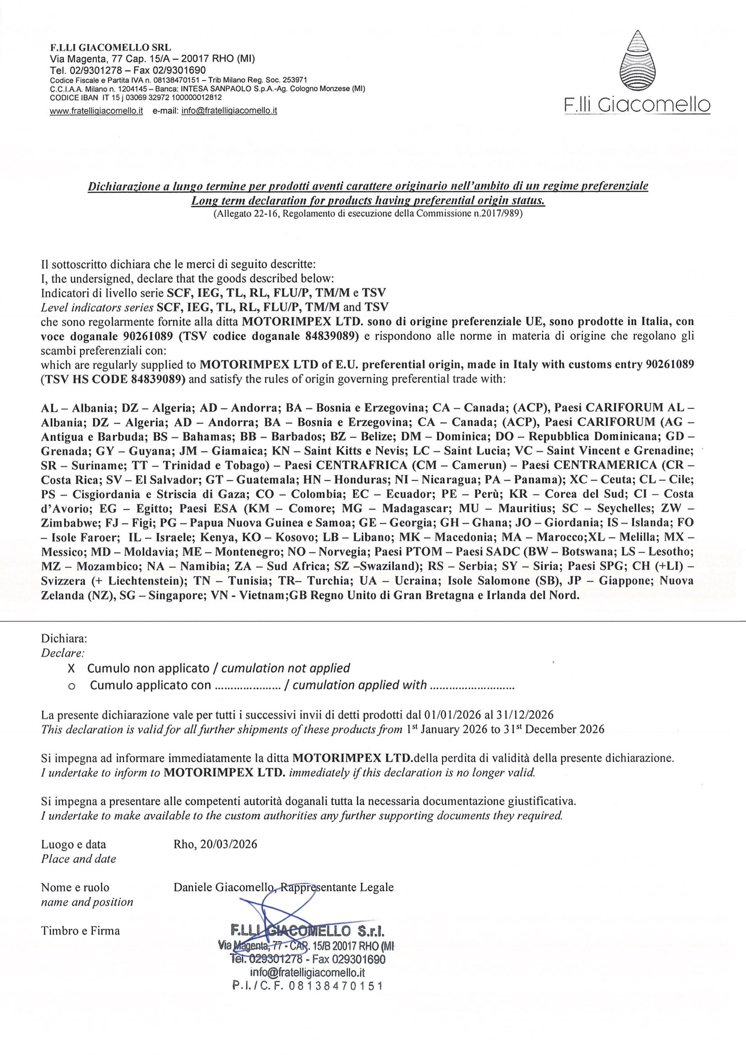 F.lli Giacomello 2026